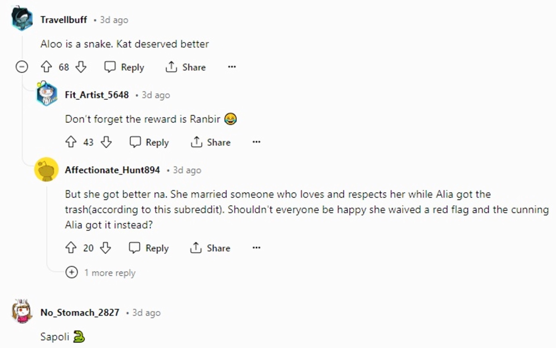 While commenting on the photo, a user wrote, “With cheaters, you lose them how you get them. Ranbir is the common denominator in all these. But with Katrina and Deepika, they weren’t friends. Alia pretended to be a wolf in sheep’s clothing for Katrina. Kind of like Cassie from Euphoria. You don’t date your good friend’s long term ex, especially if they have broken up less than a year before.”
