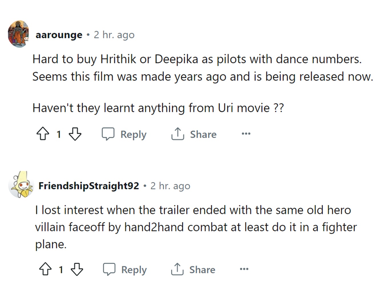 Despite early scenes depicting the scenic beauty of Jammu and Kashmir and the team’s camaraderie, fans are sharing reasons for deeming the ‘Fighter’ trailer a major letdown. Before we share these reasons why the much-hyped trailer failed to impress, take a look at the trailer below to form your own opinion: