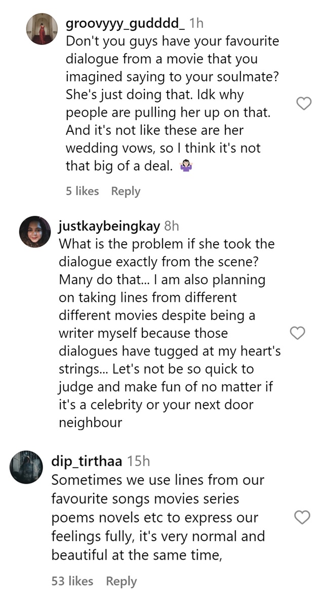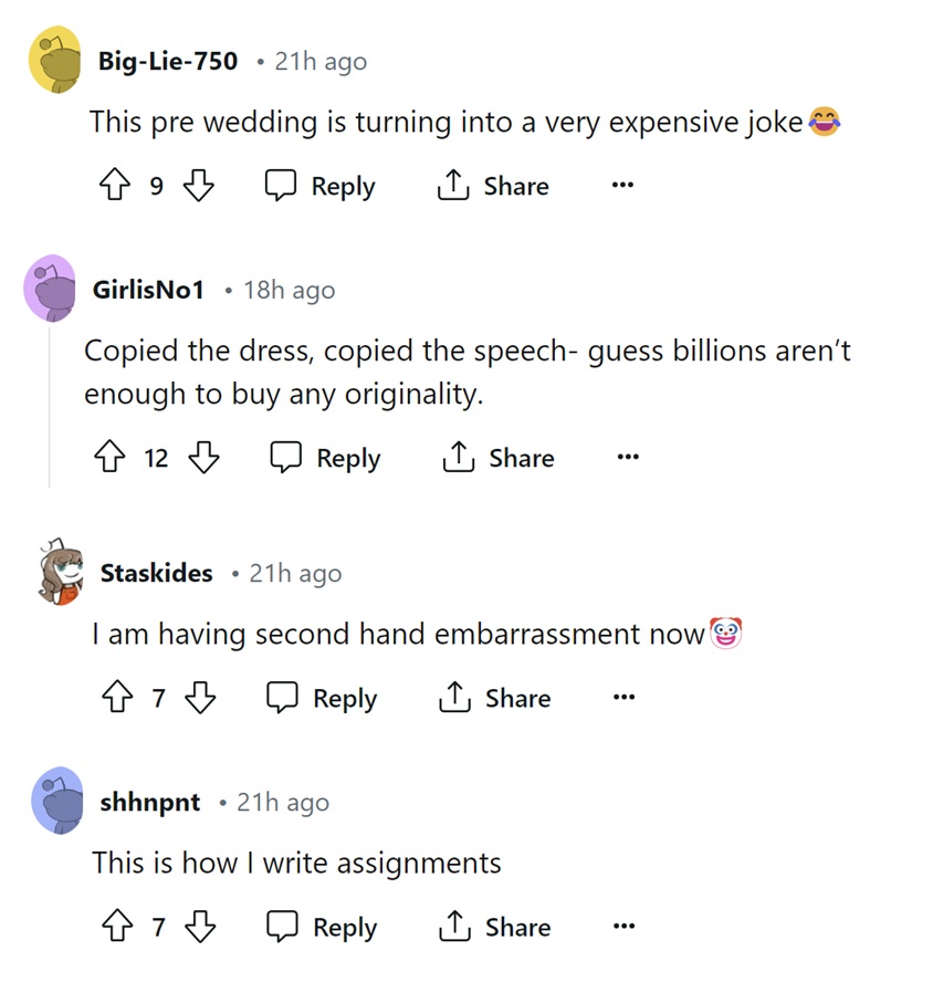 However, just a few days after the pre-wedding bash, the video of Radhika’s speech went viral again – but this time not for a heartwarming reason. As netizens on Instagram dug into the speech, they called her out for plagiarism, noting an uncanny resemblance between Radhika’s speech and a Hollywood film.
