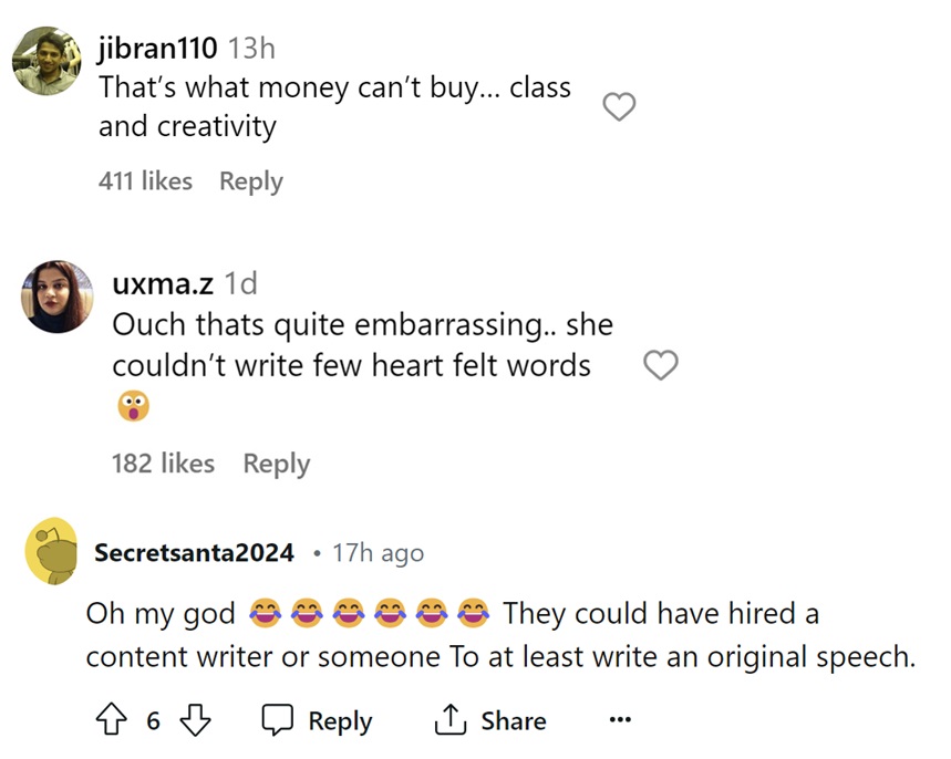 Many came forward to react to the video. While some criticized Radhika Merchant for her plagiarized speech, others came in support of her. Here’s how people reacted: